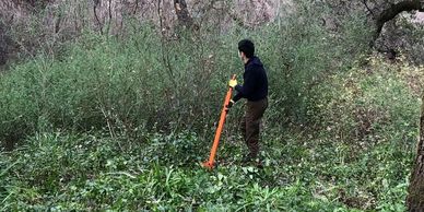 Clearing brush around trails. Removing some of the foliage makes hiking through the narrow path much easier.