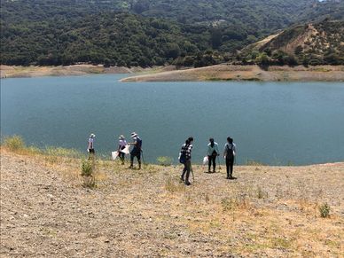 Clean up at the main reservoir. Almost taking a full loop around the reservoir, we filled up some bags of trash.