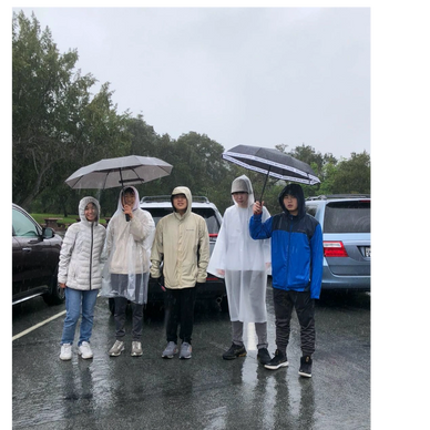 Park maintenance. We helped clean up eucalyptus leaves off the ground and removed staples from tables, despite the rain.